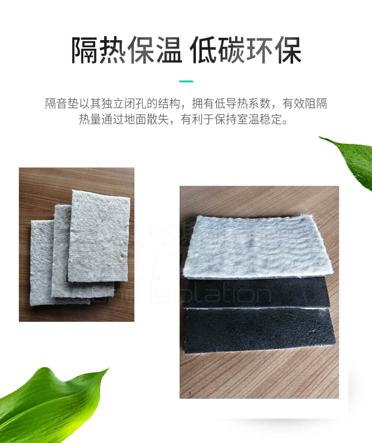 具有隔音好,防水防潮,無毒環保,隔熱保溫,回彈力好,重量輕,使用壽命長等特點,是解決住宅噪音問題的專業隔音產品,是一種新型節能環保材料。
